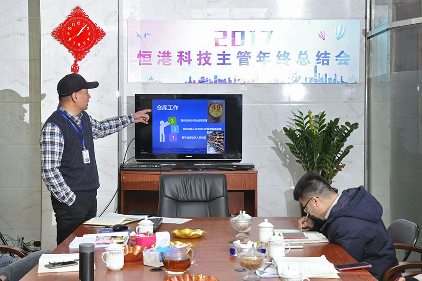 為了總結我司廣大員工在過去一年工作中的成績與不足之處,公司特別安排了所有員工都按部門分批集中到一起開展2017年的年終總結大會,會議中全部采用幻燈片的形式結合數據與分析進行演講,還有其它相關部門的員工參與旁聽及評論總結、相互討論學習。會議正在熱烈進行中。。。,有興趣的請趕快進行圍觀啦!