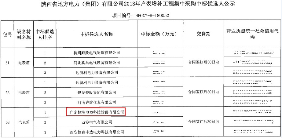 熱烈祝賀我司在陜西省地方電力(集團)有限公司2018年戶表增補工程集中采購項目招標(SPGYX-H-180052)中標