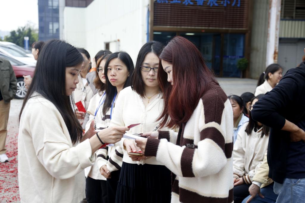 上午九時,全體員工集合于公司門口大廣場,聆聽領導的開年致辭。