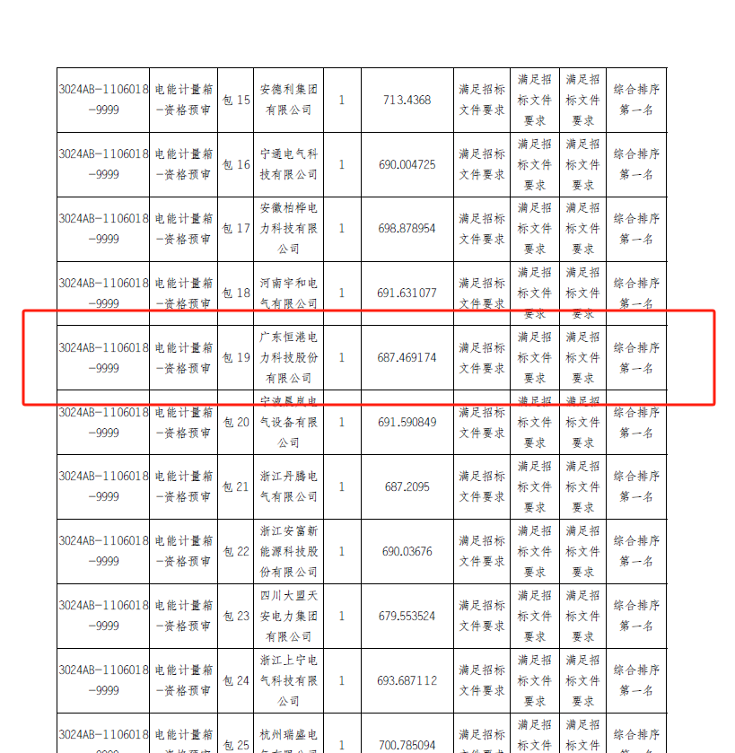 2024年12月3日國網新疆電力有限公司傳來捷報,廣東恒港電力科技股份有限公司中標“國網新疆電力有限公司2024年第二次配網物資協議庫存公開招標采購項目”項目電能計量箱分標。恒港公司一直持著“客戶至上、質量第一”的經營理念,為客戶提供更加優質的產品和服務。讓我們繼續攜手共進,再奪佳績?。。?/span>