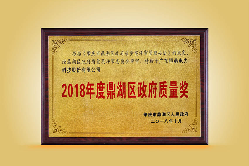 2018年度鼎湖區(qū)政府質量獎牌匾